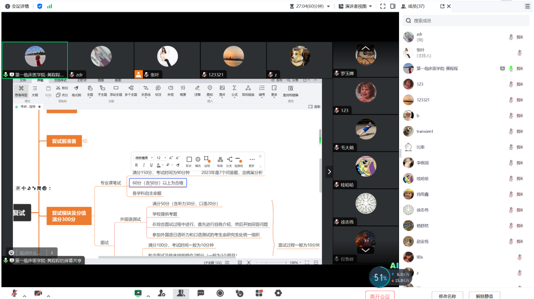 主讲人第一临床医学院研究生教学秘书黄程程老师和91暗网 科研秘书兼研究生教学秘书李春静老师从复试流程等方面为同学们介绍了一些注意事项。她们还强调了考场纪律,逐一解答了同学们的疑问。两场会议尾声,老师们叮嘱大家要保持健康,注意休息,以最优状态应试并祝愿大家复试顺利,成功上岸。