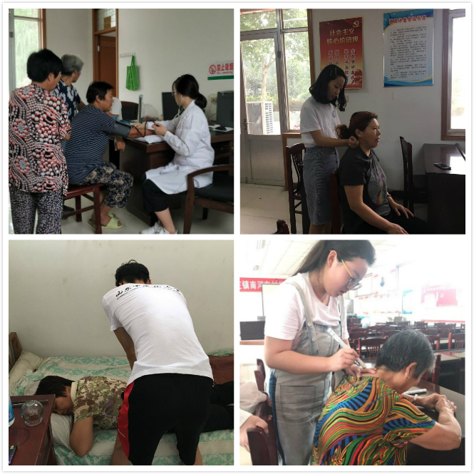 杏林医夏爱心医疗服务队,来到泰安市泰山区夏张镇下官庄村,结合师生们的专长,为村民们提供测量血压、推拿、艾灸、拔罐等医疗服务;通过发放健康知识宣传单页和口头讲解等方式向居民们宣传健康常识及国家基本医疗政策,并提供健康咨询;通过讲座,介绍夏季常见病的预防和夏季食疗方,进行了夏季养生知识的科普,受到居民的好评。