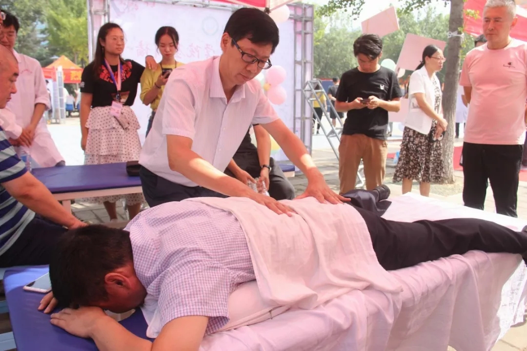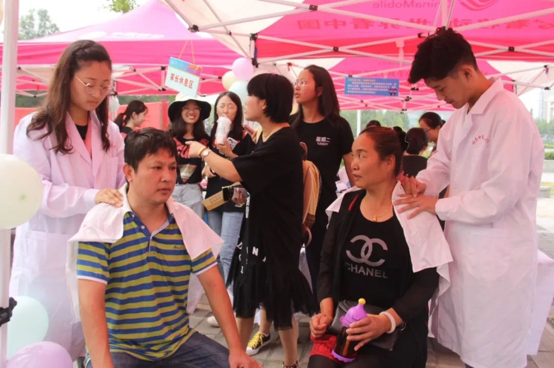 迎新现场,“针心灸行”社区服务队的同学在家长休息区为家长们提供了推拿服务,为他们缓解旅途劳顿;院长杨继国也亲自示范推拿手法,并向新生及家长做了详细讲解,受到新生及家长们的一致好评。