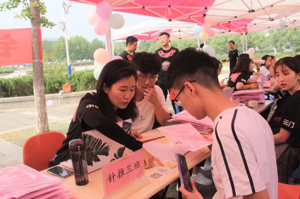 党总支书记王锋、院长杨继国、副院长孔庆悦、党总支副书记张继伟以及学院的辅导员老师,来到迎新现场迎接来自五湖四海的新生及其亲友。