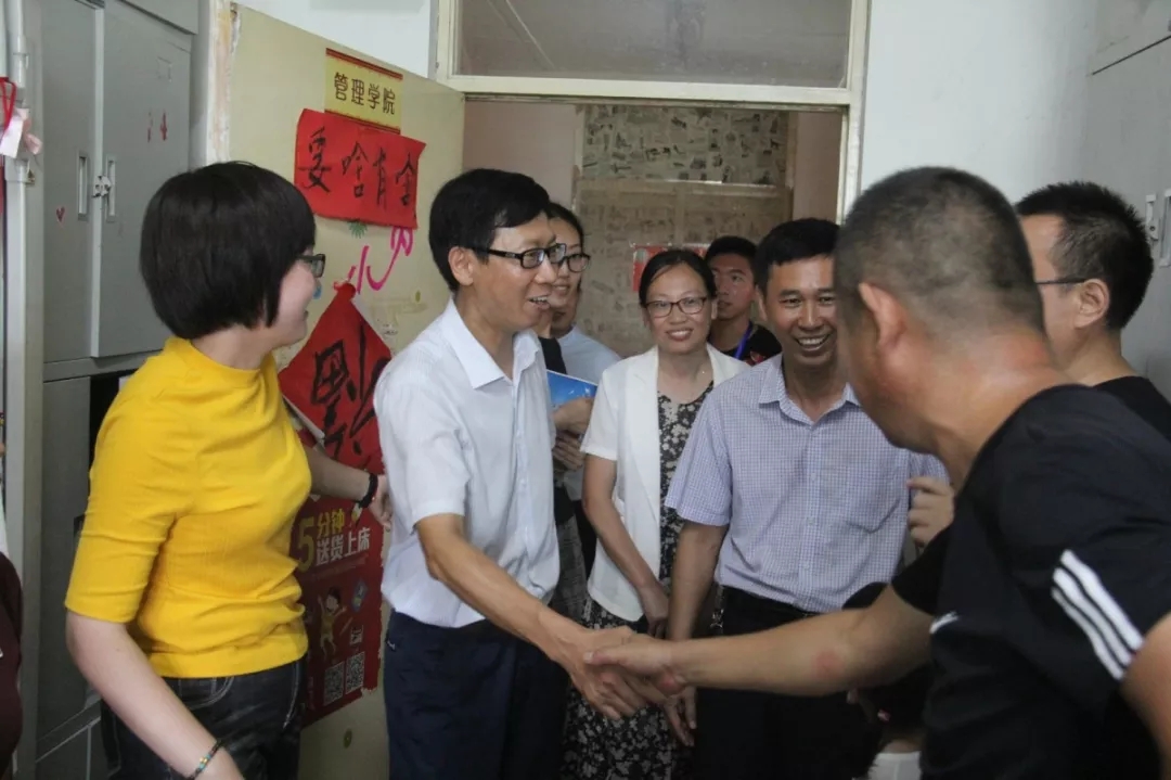 的迎新工作进展情况,并与新生及家长亲切交流,解答新生及家长的疑惑。随后,院领导一行人来到新生宿舍,详细询问了新生的安顿情况和生活需求,并鼓励新生好好学习,掌握好专业知识,力争成为一名好医生。宿舍中时不时传出欢声笑语,温暖的家常聊天很快消除了新生们初来乍到的陌生感。