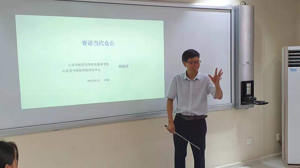 院长杨继国教授在教学楼109会议室以《寄语当代仓公》为题给同学们带来了精彩的学术讲座,杨继国结合中医外治方法,从了解针灸、穴位贴敷、医疗事故几个方面教导同学们勇于思考和动手的同时,注重医疗安全,为成为新时代中国特色社会主义背景下的合格中医人而努力奋斗。