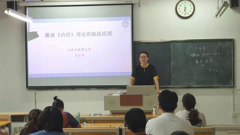 7月16日,王小平教授在教学楼305教室以《漫谈内经理论的临床应用》为题给同学们带来了精彩的学术讲座,鼓励同学们根植于经典,结合经典,打开中医典籍的学习思路,更好的服务临床。
