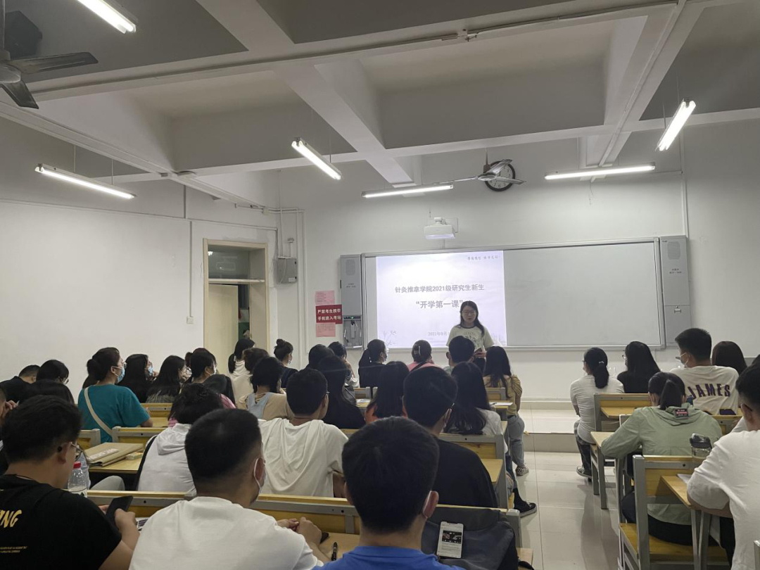 2021级研究生新生“开学第一课”在千佛山校区教学楼111教室举行,由学院研究生新生辅导员宁鲁宁老师主讲。