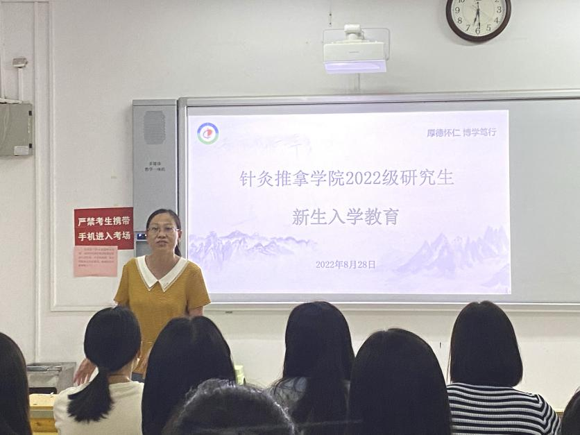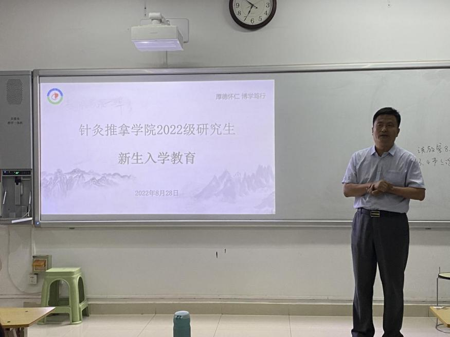会上还举办了专业讲座。推拿教研室主任井夫杰结合学科专业特色、专业现状、发展前景等,寄语同学们一定要互帮互助,团结友爱;要知行合一,不能“躺平”,要提高科研创新能力,注重知识积累;要精于专业,通晓各科,专注临床,注重医患有效沟通,提升专业临床素质和综合能力。