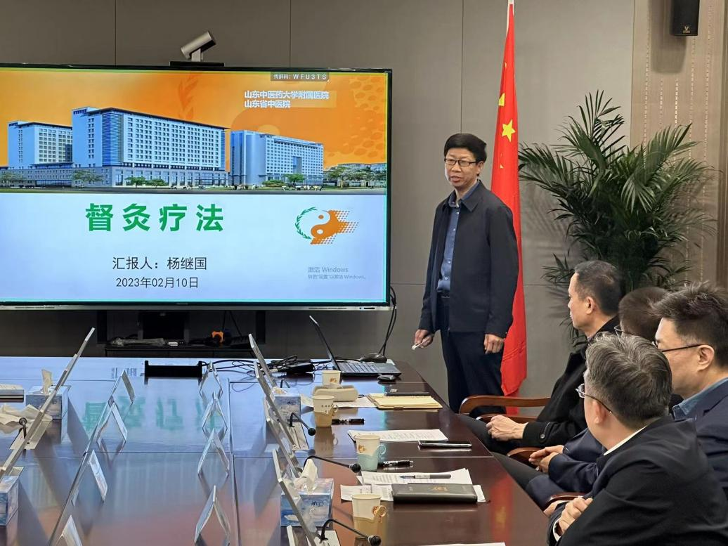 杨继国院长、马玉侠副院长分别作为督灸疗法和高氏脐灸的项目负责人,从传承脉络、技术特色、推广应用及取得成效等方面进行了汇报。并在调研组实地考察中医外治中心时,展示了督灸疗法和高氏脐灸的详细操作流程。调研组现场听取了科室业务发展、特色疗法应用情况,并就有关工作进行了深入交流。