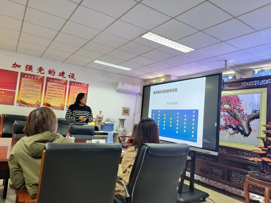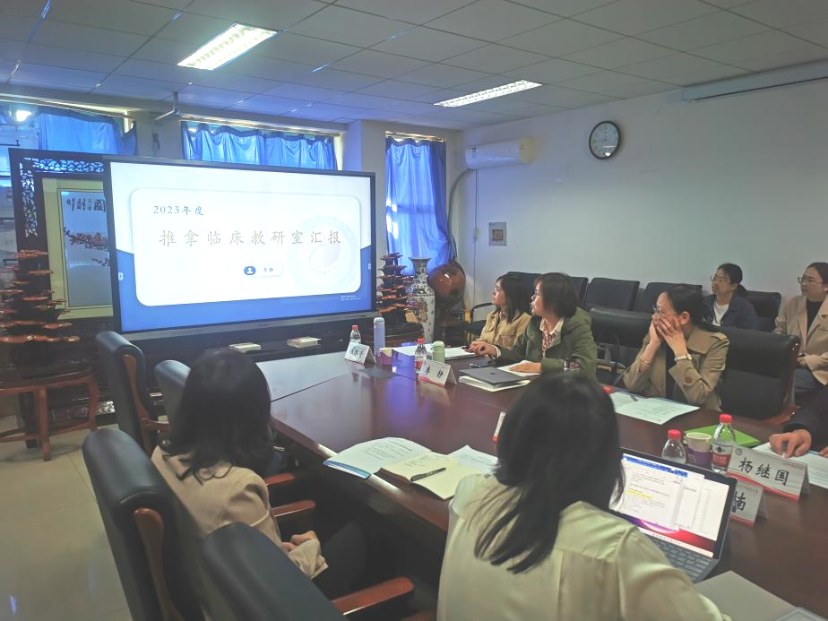 杨继国院长带领学院教师对专家的来访表示热烈欢迎,从专业发展沿革情况、专业培养目标、师资队伍、培养过程与课程体系、教学建设与改革等8个方面汇报了针灸推拿专业建设情况。刺灸治疗教研室和推拿临床教研室简要介绍教研室基本情况、取得的成绩和教研室特色活动。焦楠主任充分肯定了针推学院、教研室建设成绩,与学院教师交流互动,并对学科专业建设、审核评估提出建设性意见。会后焦楠主任参观了学院教研室,对教研室的建设提出了改进意见。