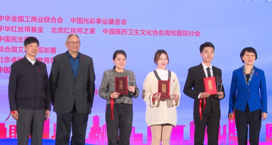 在第36个“世界艾滋病日”来临之际,团队所创作的防艾宣传作品在世界艾滋病日主题宣传活动暨第三届校园情景剧获推优作品揭晓仪式中经过全国64所高校的激烈竞争中,斩获全国第4名的优异成绩,十届、十一届全国政协副主席、中华红丝带基金名誉理事长黄孟复,国家卫生健康委员会副主任、国家疾病预防控制局局长王贺胜,全国工商联副主席方光华,联合国艾滋病规划署驻华办事处代表莫易睿等领导嘉宾分别对艾滋病防治工作和校园艾滋病防治工作提出要求,团队负责人作为全国高校学生代表进行交流发言,全国工商联原副主席、中华红丝带基金理事长张元龙主席为我校授予“红丝带·助力有你”校园奖章。