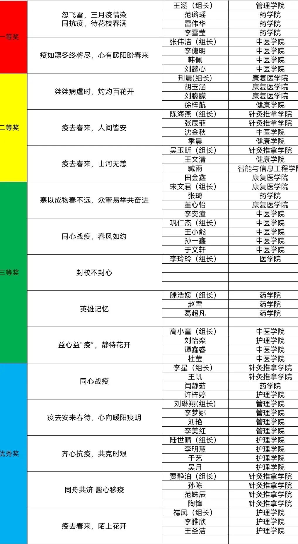 获奖名单公布如下