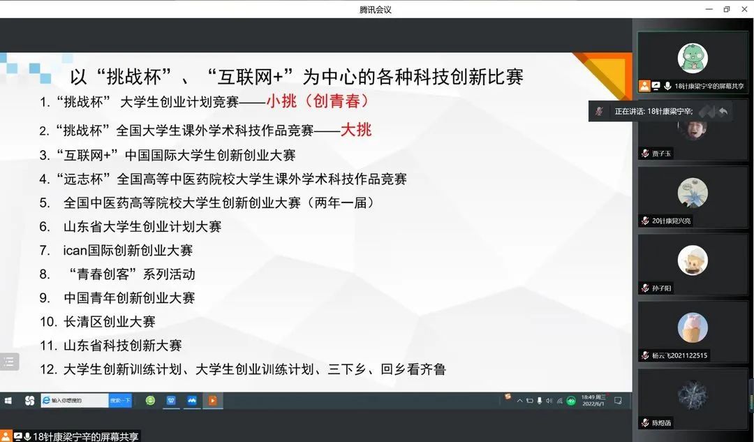 青囊讲坛系列讲座第一百五十七期于线上成功举办。本次青囊讲坛的主题为“创新创业大赛经验分享”,主讲人为针灸推拿本科(康复医学)18级01班梁宁辛。
