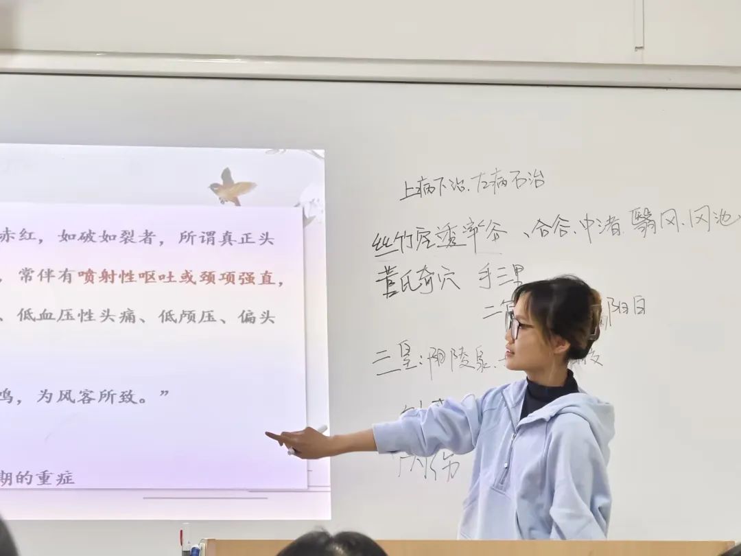 学生会学习部承办的第一百六十四期青囊讲坛在2204成功举办。本期青囊讲坛分为两个部分,分别是“头痛非小事,中医显妙招”和“不能承受的生命之痛——痛经”。主讲人分别是20级针灸推拿学(英语方向)01班单普凡和杜垚、22级针灸推拿学(康复方向)02班刘子怡和郑紫馨。