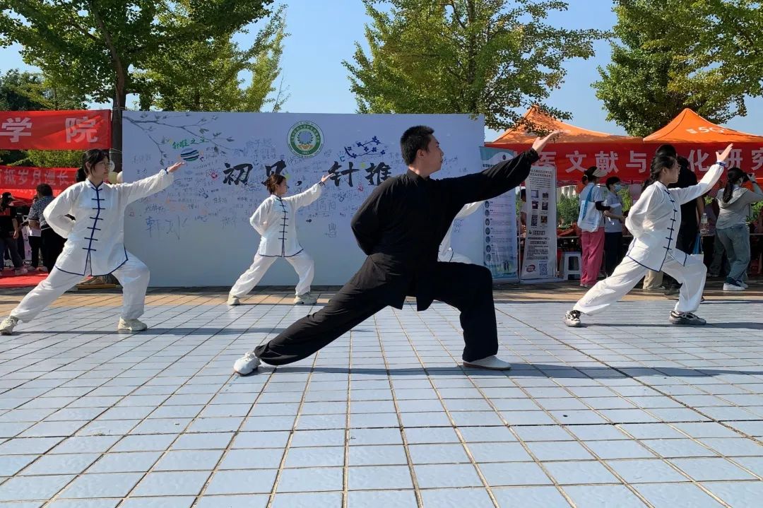 的志愿者们以易筋经为例,向新生和家长们展示了学院特色,也使得新生们对功法练习产生了浓厚的兴趣。