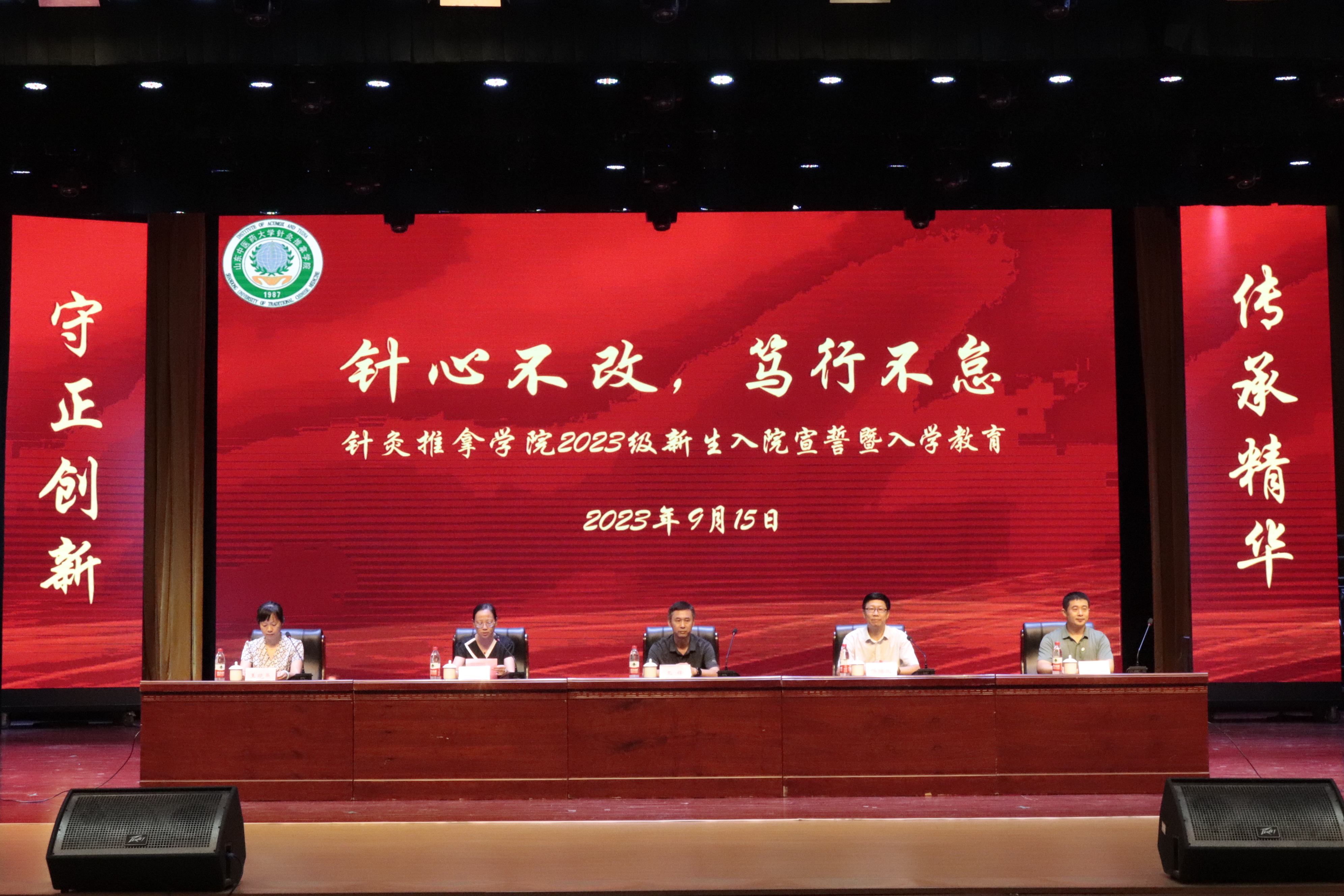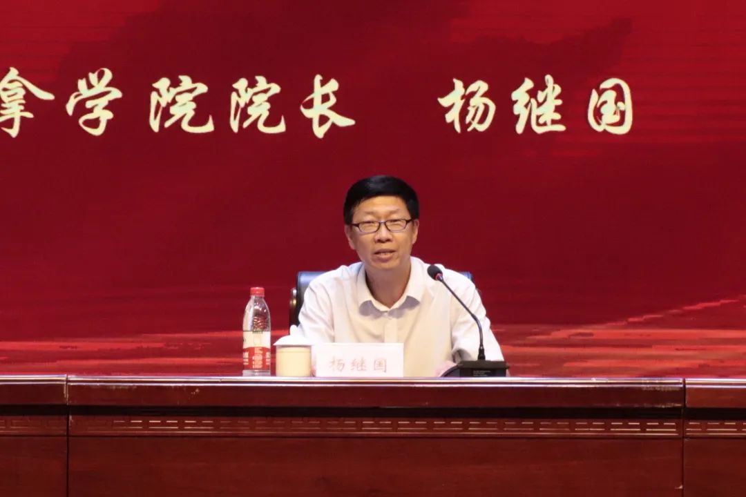 接着,由院长杨继国向新生们致欢迎词。讲话概述了学院的基本情况,具体分析了学院的学科特色与教学特点,展示了一系列学科成就,并对新生们未来的大学生活提出了几点希望:胸怀“国之大者”,做信念坚定、怀抱梦想的坚守者,在传承与发展中医药事业中踔厉奋发、勇毅前行;坚定文化自信,做奋楫扬帆、矢志不移的传承者,培根铸魂,赓续中医血脉;坚持守正创新,做勤学善思、勇于开拓的践行者,响应党和国家号召,做中医药事业接班人!