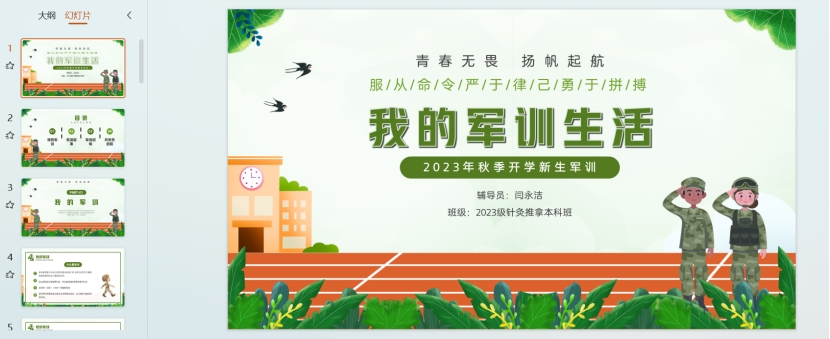 开展军事训练是同学们接受国防教育的一门必修课程,是增强体质、强化纪律观念、培养优良作风、锤练顽强意志的重要举措。