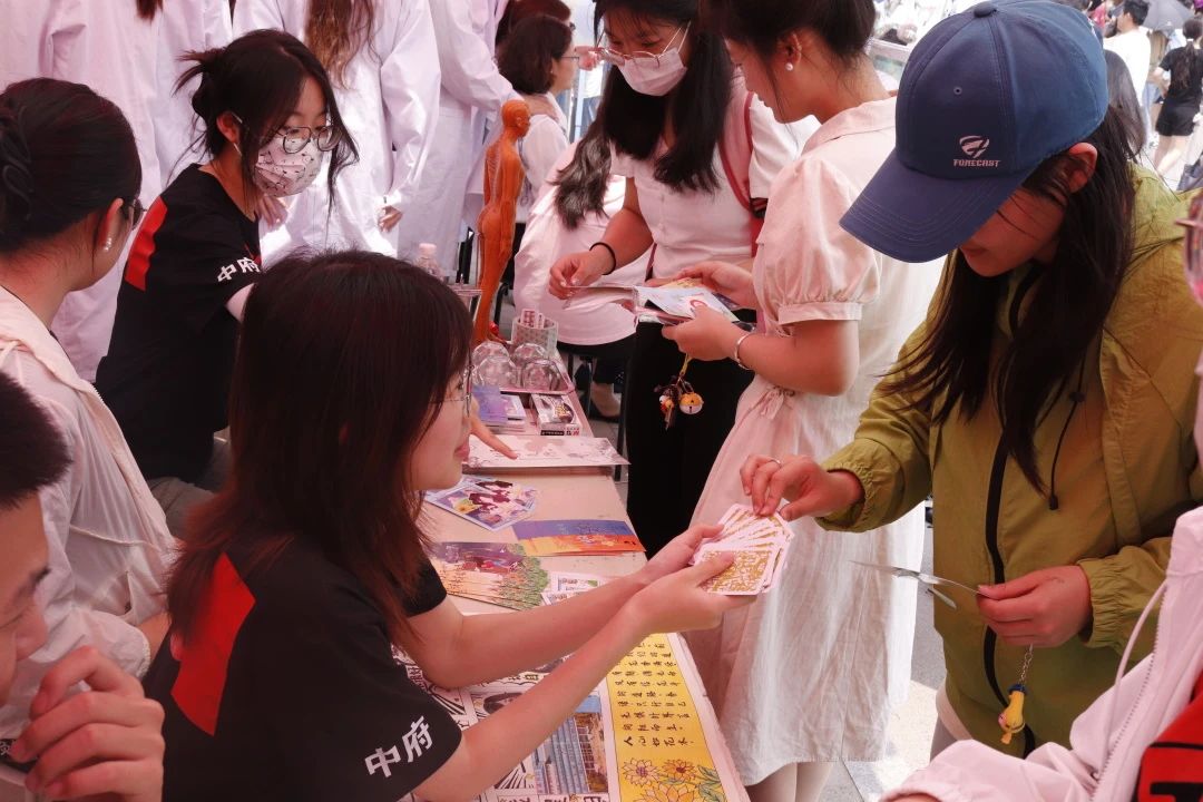 作为活动承办单位之一,布置了“针知灼践”摊位,进行义诊服务,并设置了“阳光心灵”心理健康海报大赛展览、院刊作品展、心理映射小游戏、中医知识宣讲等环节。