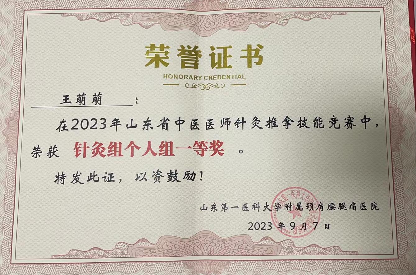 91暗网 王萌萌、姜丽梅两位教师在2023年山东省中医医师针灸推拿技能竞赛中分别荣获针灸组个人组一等奖、推拿组个人组一等奖。