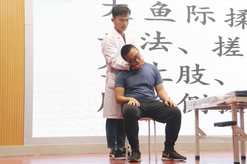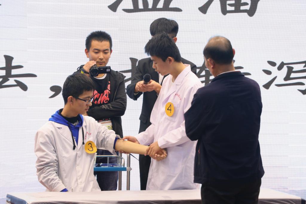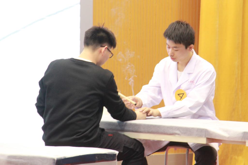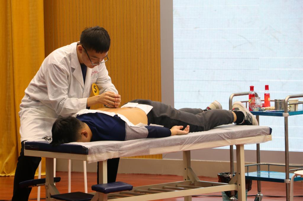 本次比赛分为腧穴定位与针刺、推拿、拔罐、艾灸四个环节。