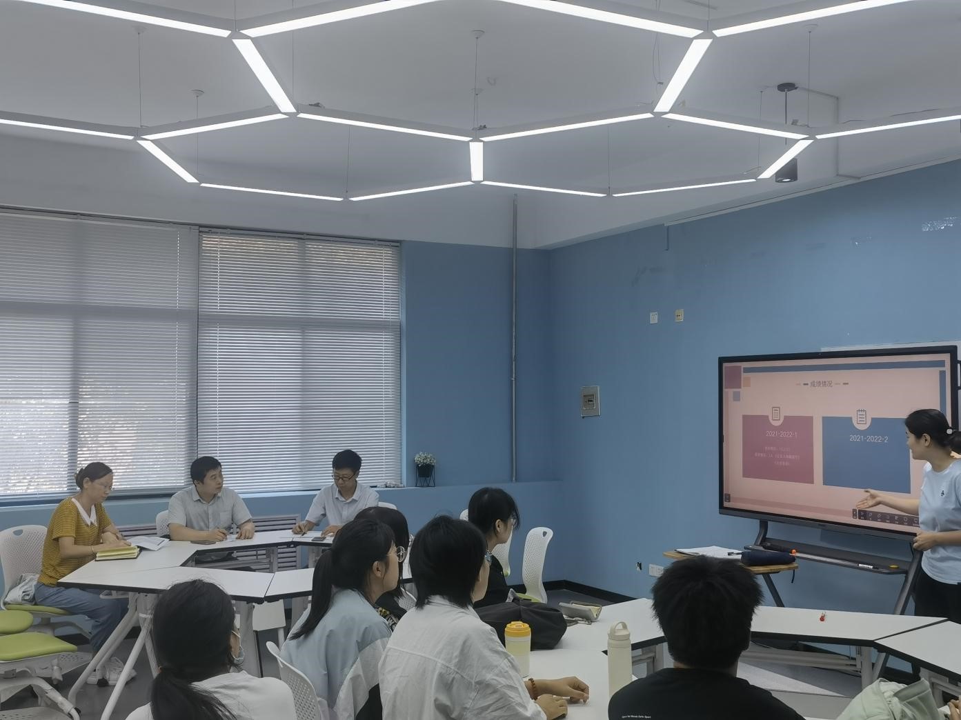 班主任刘慕清和仓公班班长分别就2021-2022学年班级学习成绩、课外个性化学习、功法晨练、跟师学习情况等做了详细介绍。杨继国院长充分肯定了仓公班学生一年来的整体表现和取得的学习成绩,并表达了学院领导和老师对仓公班的高度重视和殷切期望。