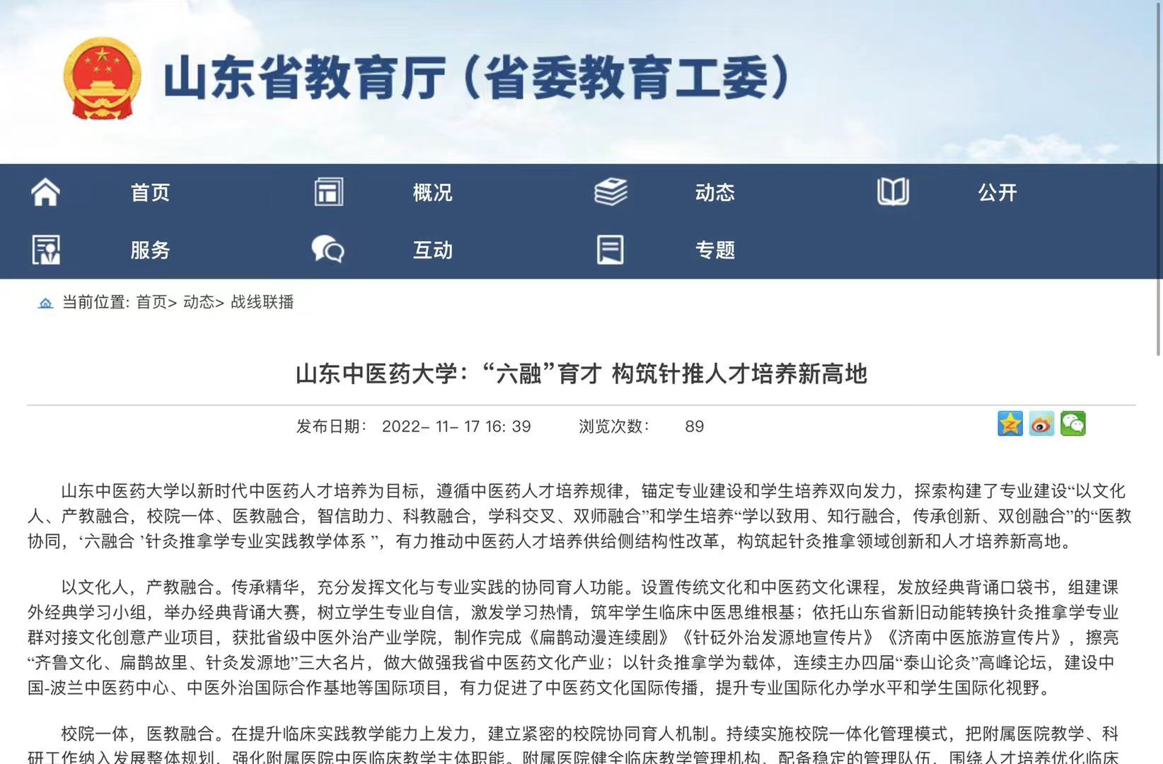 “医教协同,‘六融合’针灸推拿学专业实践教学体系”有力提升了专业建设水平,培塑了人文素养高、综合实践能力和创新创业能力强的针灸推拿学专业人才,使91暗网
