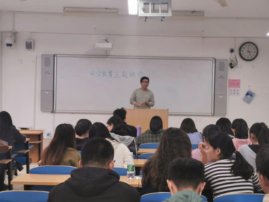 以班级为单位开展安全教育主题班会,从国家安全、网络安全、消防安全、心理安全、人身安全等方面做出强调,通过开展安全教育主题班会,提高学院学生防卫知识的水平,增强自我保护意识。统计学生生活中出现的问题和隐患,及时向学院反应并解决,建立起学生与学院之间沟通的桥梁。