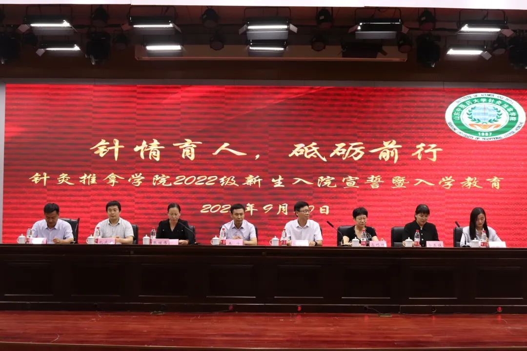 宣誓完毕后,学院领导、嘉宾向新生代表颁发学习用具——《针灸推拿学专业必背经典文献》、针具、米袋、针包。