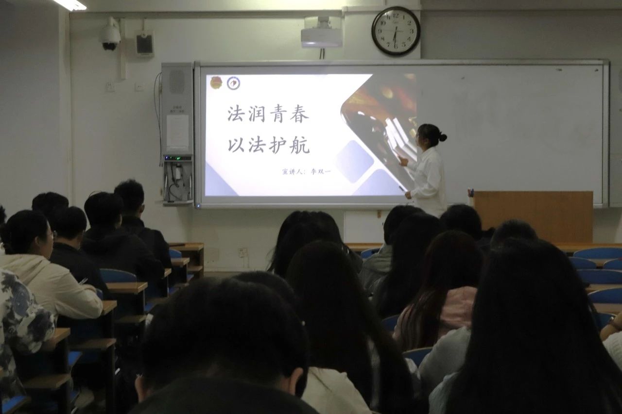 首先,李双一从法治概念与基本原则、宪法与法律体系在法治中的地位和作用、诚信教育与学术道德建设等多个方面进行讲述,论证了法治建设具有促进经济发展、保障社会公正、维护国家安全等重要意义,并带领我们回顾了近代以来中国法治进程。
