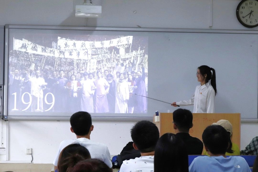 为进一步深入学习贯彻习近平新时代中国特色社会主义思想和党的二十大精神,弘扬五四运动“爱国、进步、民主、科学”的精神,2024年5月13日下午,以“传承五四精神,赓续青春血脉”为主题的宣讲活动在2408教室成功开展。
