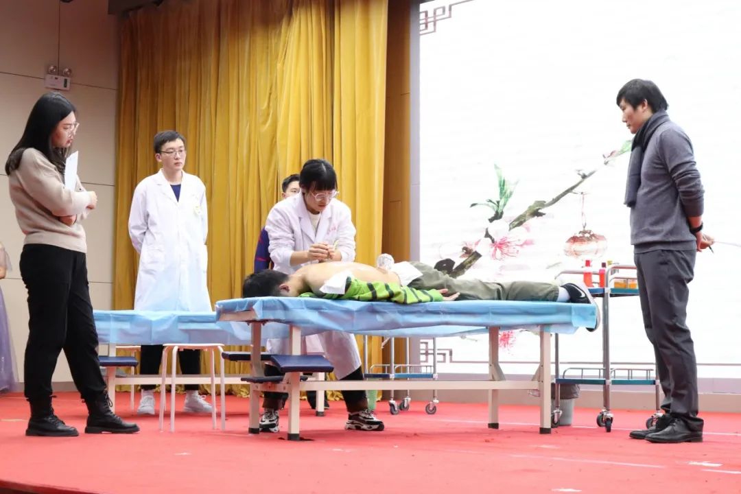 本次比赛分为腧穴定位及针刺、推拿、拔罐、艾灸四个环节。