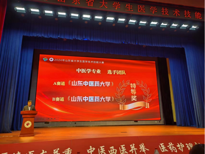 学生李金汐、刘家呈、胡明辉、胡尚妍参加中医学赛道比赛,我校中医学专业赛道再次包揽A、B赛道的团体特等奖,包揽A赛道10个站点单项冠军,夺得B赛道6个站点单项冠军。