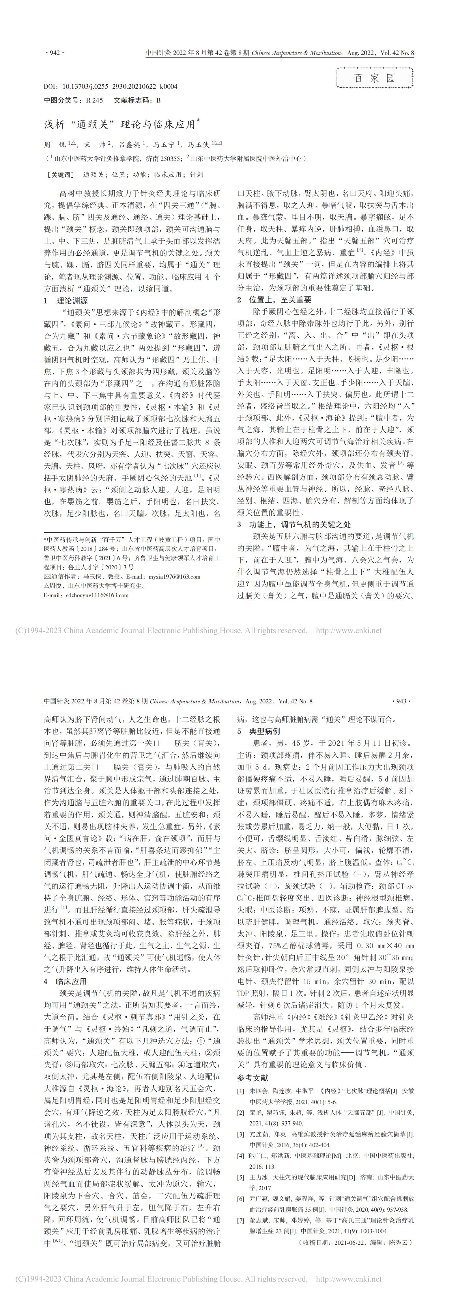 高树中基于气街四海理论探析从阳引阴刺法临床经验撷要