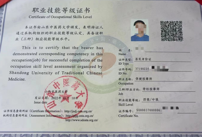 2.国家等级证书:参加保健推拿培训班后,可在我校报名参加国家保健按摩师职业技能等级认定考试(理论机考+推拿实操,不同等级考试费200-300元),考试时间另行通知,考试合格者,取得相应的职业技能等级认定证书可从事相关工作,本培训班结合考试大纲开展培训,通过率较高。