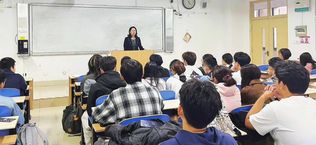 于主任着重强调了学生在课堂上的主体作用,并向全体学生发出了“让课堂活跃起来”的倡议。她具体提出三点要求:“课堂要积极发言”:鼓励大家勇于打破沉默文化,敢于提出自己的见解和疑问。“与老师要多互动”:希望同学们能变被动听讲为主动参与,跟上老师思路,通过提问、回答、课堂讨论等方式,与老师共同构建一个充满活力的学习场域。“对教学要多反馈”:无论是对知识点的接受程度,还是对教学方法的建议,及时、坦诚地反馈都能帮助老师精准优化教学,最终受益的是全体学生,从而实现真正的“教学相长”。于主任总结说,一个优秀的课堂,不是老师的“独角戏”,而是师生双方的“协奏曲”。他期待通过大家的共同努力,营造出勤思、敢言、乐学的优良学风。