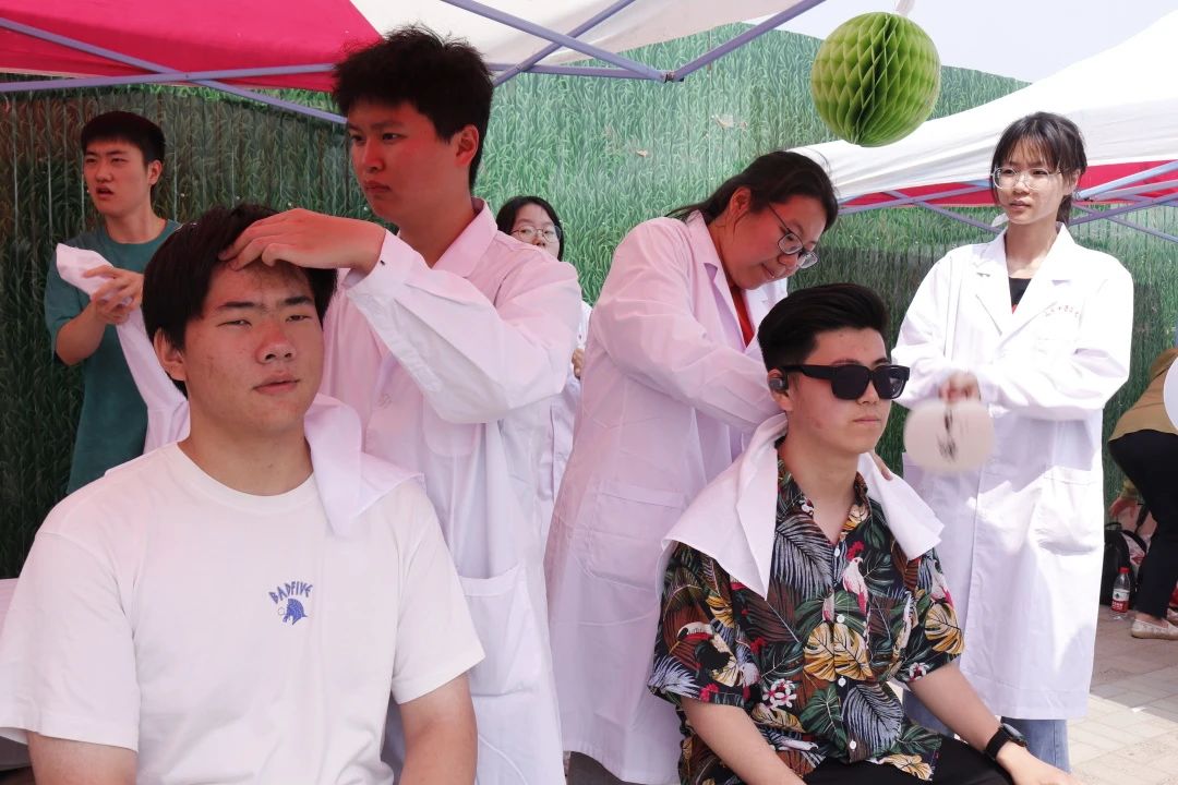 作为活动承办单位之一,布置了“针知灼践”摊位,进行义诊服务,并设置了“阳光心灵”心理健康海报大赛展览、院刊作品展、心理映射小游戏、中医知识宣讲等环节。